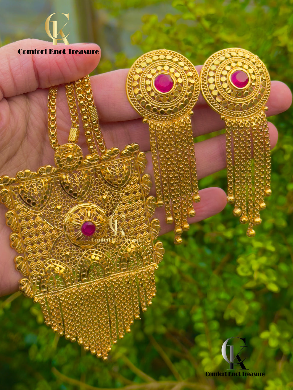 Big Pandant Mala Set With Hanging Tassal | 24k Gold Plated | MLA